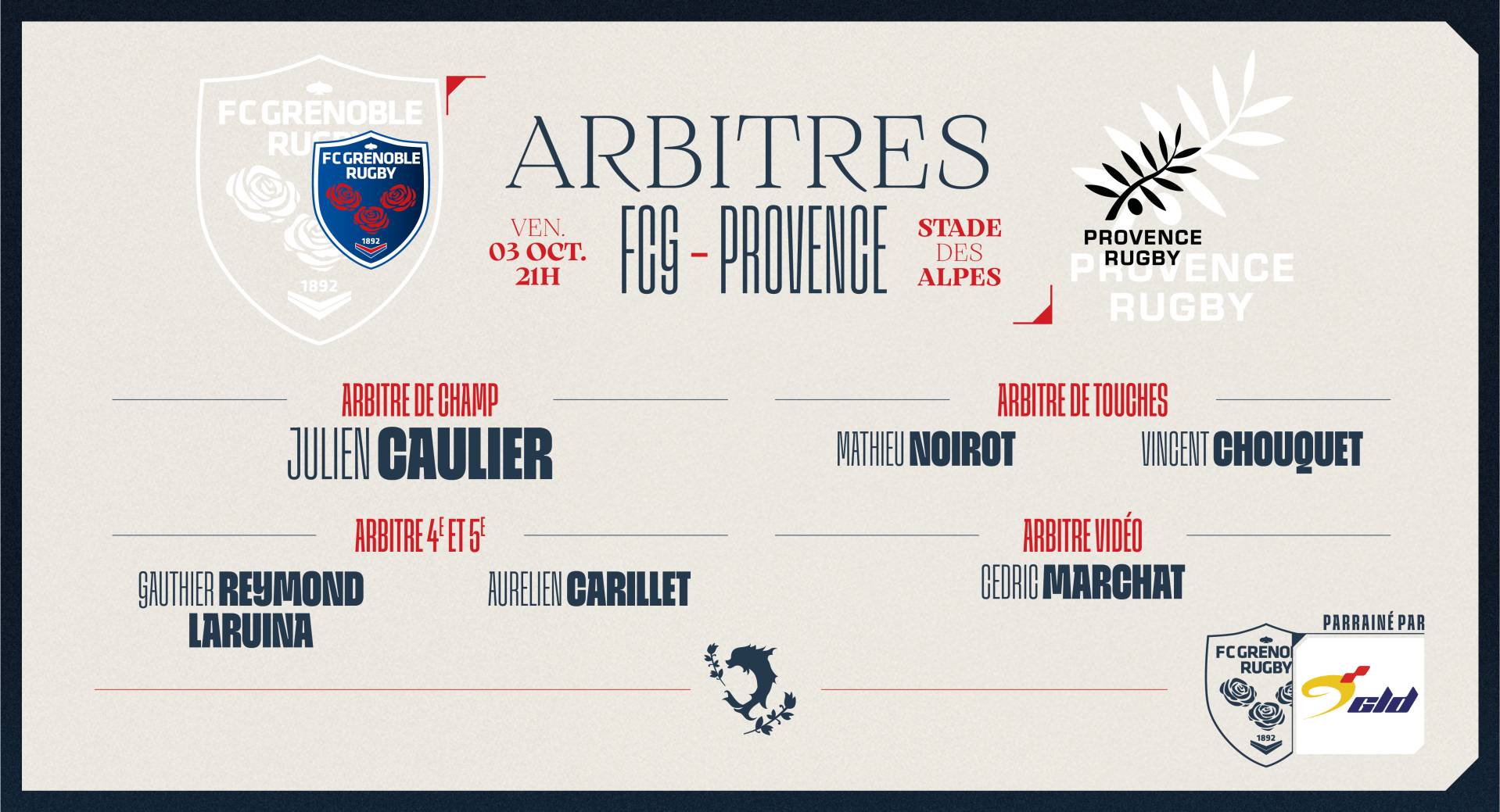Grenoble Logistique Distribution vous livre les arbitres de la 6e journée de ProD2, pour laquelle le FCG reçoit Provence, ce vendredi 3 octobre à 21h au Stade des Alpes !