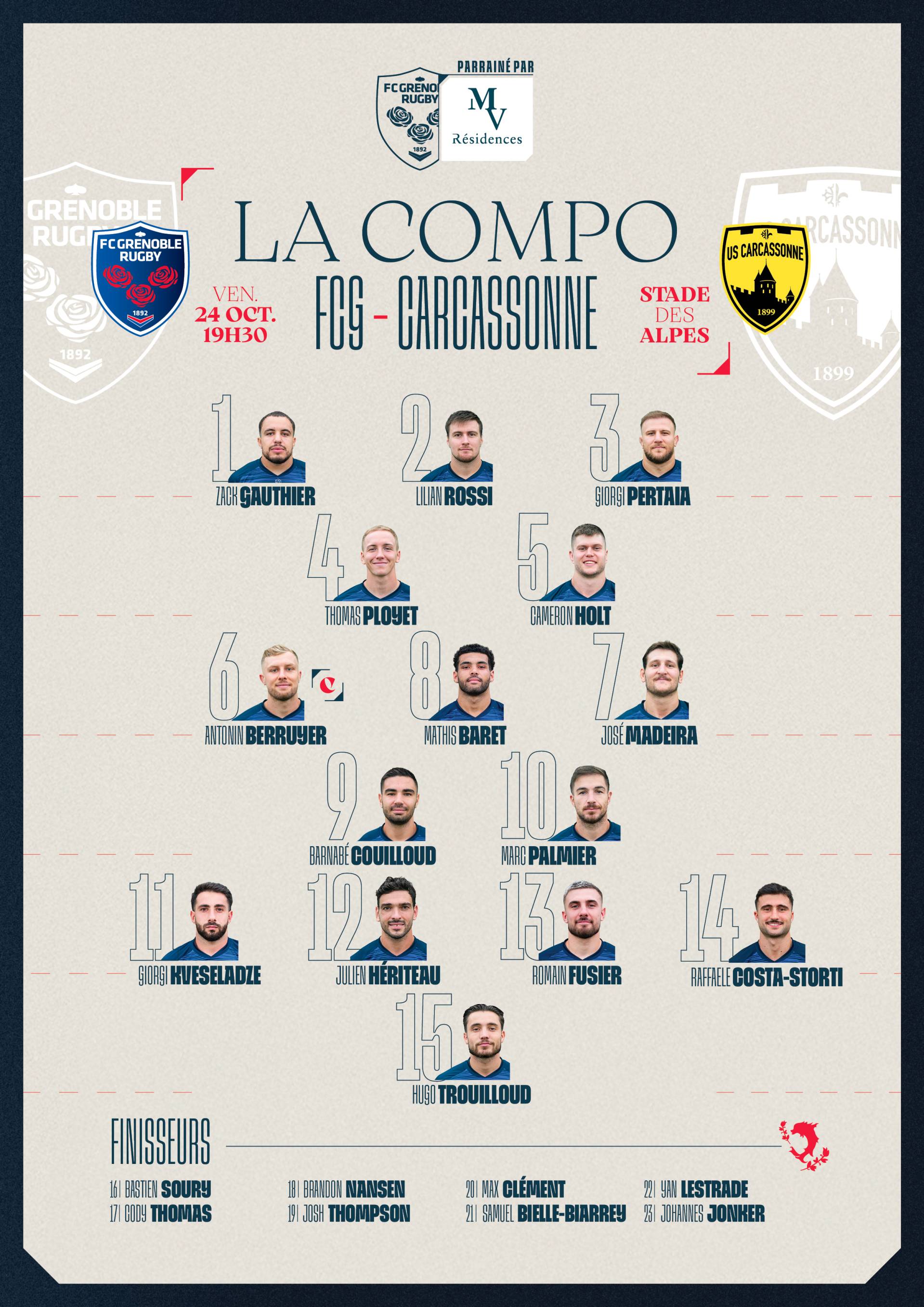 MV Résidences vous présente la compo’ du FCG pour sa huitième journée de championnat, à domicile, face à Carcassonne !