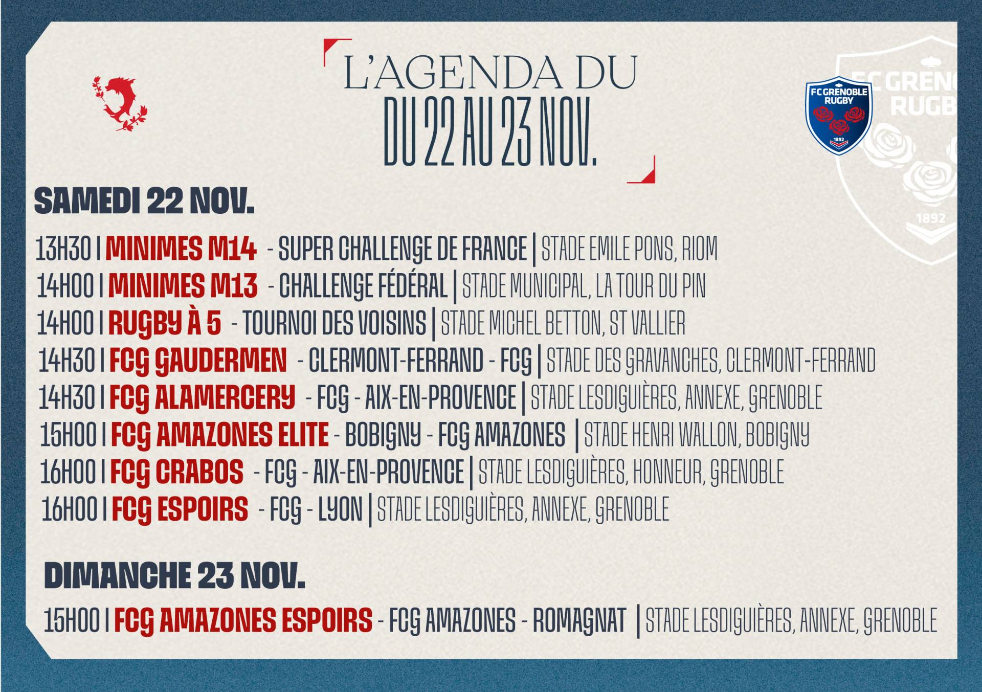 Les matchs des U13, des Alamercery, des Crabos, des Espoirs hommes du samedi, ainsi que le match de nos Amazones Espoirs du dimanche, sont reportés à une date ultérieure pour cause de neige/gel !