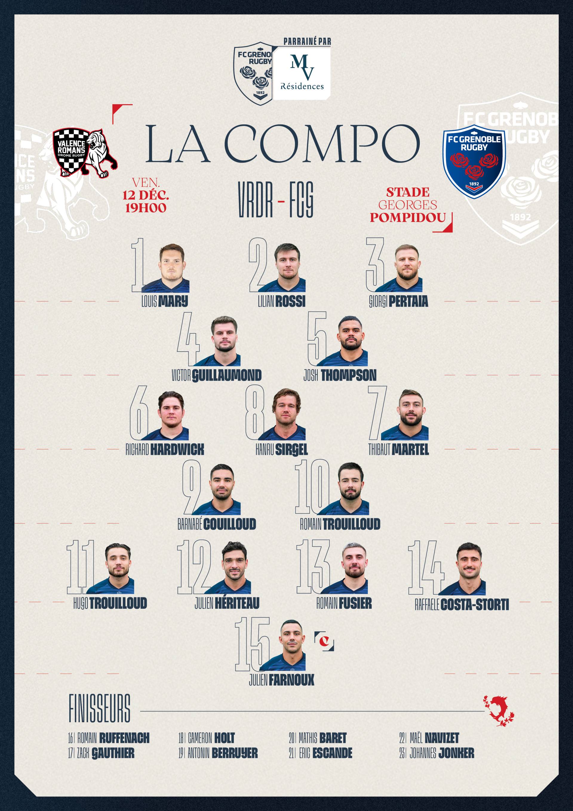 MV Résidences vous présente la compo’ du FCG pour sa 14e journée de championnat, au Stade Georges Pompidou à Valence et sur Canal+ Sport !
