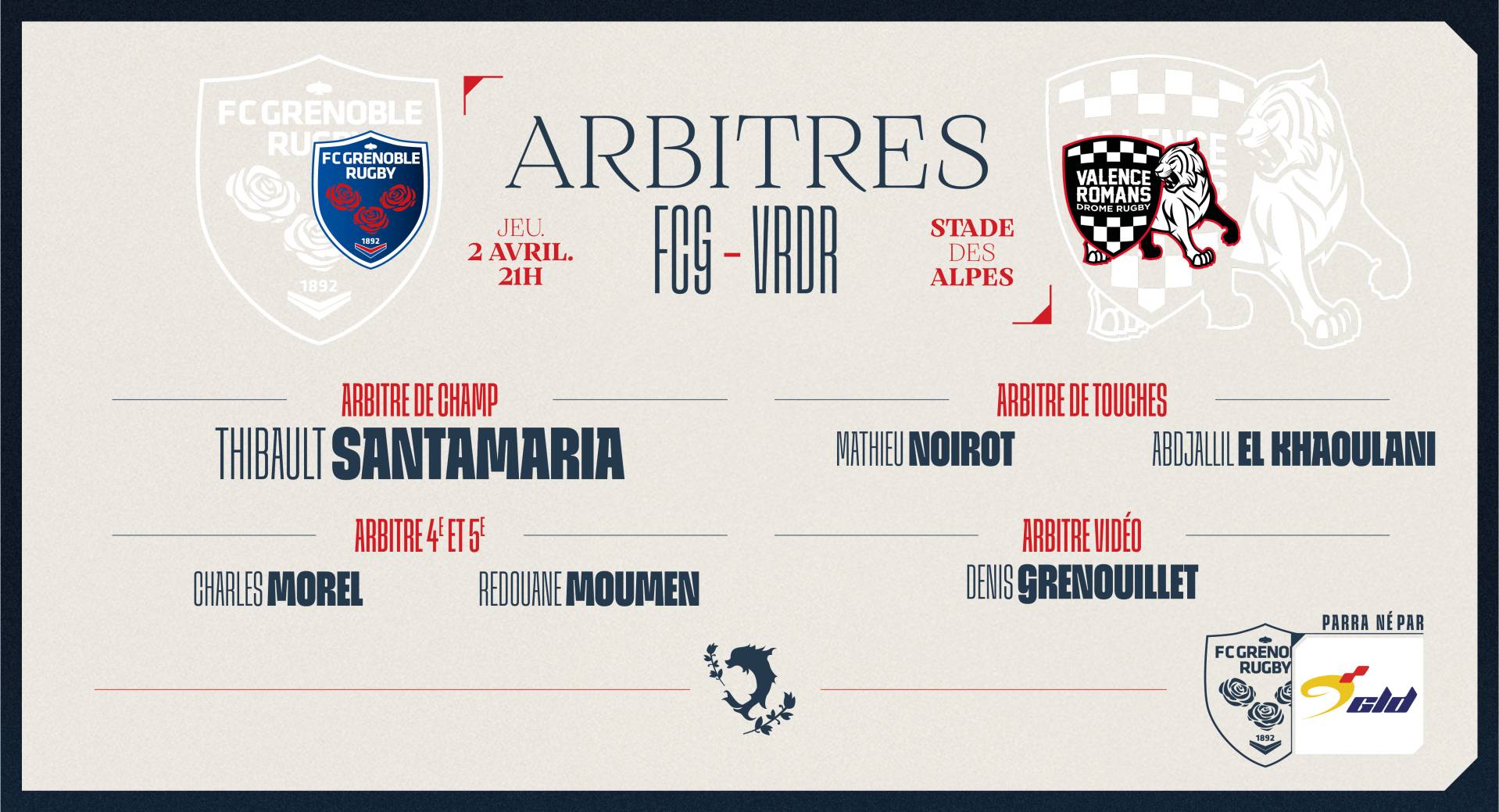 Grenoble Logistique Distribution vous livre les arbitres de la 25e journée de ProD2, pour laquelle le FCG reçoit Valence-Romans, ce jeudi 2 avril à 21H au Stade des Alpes !